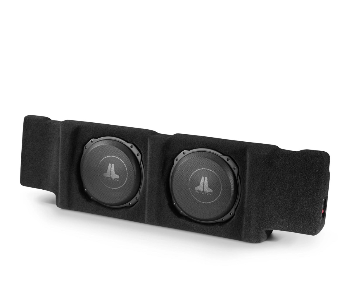 The massive GM Crew Cab trucks offer limousine-like rear seat room and comfort, accomplished by effectively utilizing almost every cubic inch of interior space. Our Stealthbox® for these big trucks slips behind the rear seat and features twin 10TW3 subwoofers for absolutely stellar sub-bass impact and quality. Nobody will ever know it’s there, until you turn it up.