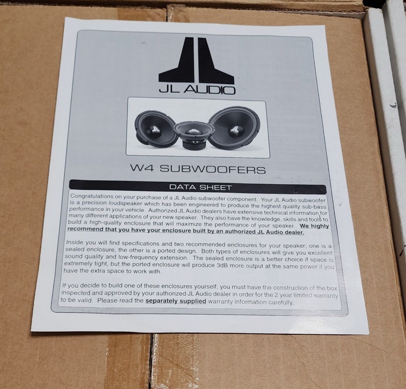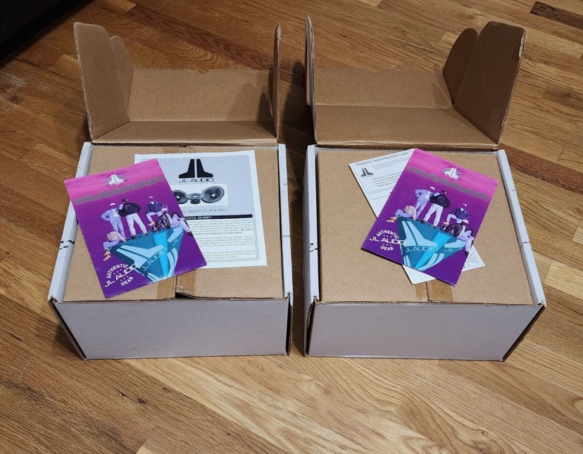 Enjoy the rarity of owning a mint condition pair of JL Audio 10w4 4ohm subwoofers. Their original, untouched quality is preserved by double boxing, ensuring that you receive a product that is as close to new as possible. -